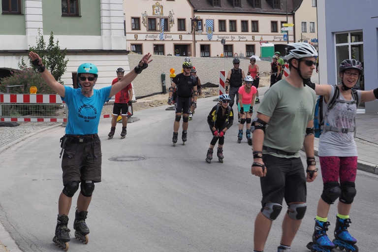 In bester Stimmung brachen die Teilnehmer der 12. Hallertauer Inline-Tour nach der Mittagspause, die auf dem Wolnzacher Volksfest stattfand, zur Nachmittags-Etappe auf.