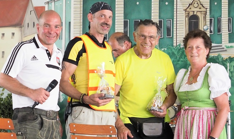 Ein besondere Anerkennung sowie ein kleines Präsent erhielt im Namen der Gemeinde Wolnzach der älteste Inline-Tour-Teilnehmer Manfred Weiler aus Seukendorf in Mittelfranken: Er absolvierte mit stolzen 79 Jahren die komplette Strecke und ließ manche, zum Teil 60 Jahre jüngere Teilnehmer locker hinter sich. „Und wenn ich nächstes Jahr meinen Achtziger hab, dann fahr ich wieder mit!“, prophezeite der Vorzeige-Senior der Hallertauer Inline-Tour schon mal.