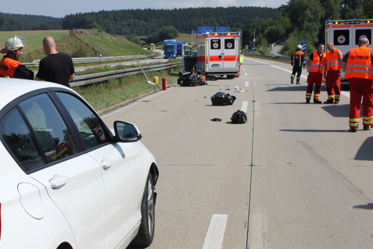 (ty) Bei einem Unfall auf der Autobahn A93 sind heute Vormittag ein 49-jähriger Motorrad-Fahrer uns seine 44-jährige Sozia mittelschwer verletzt worden. Die beiden waren nach Angaben der Polizei gegen 11.30 Uhr in Richtung Regensburg unterwegs, als es auf Höhe von Saalhaupt zu dem Unglück kam.