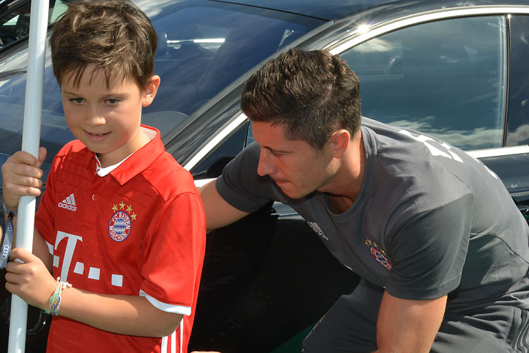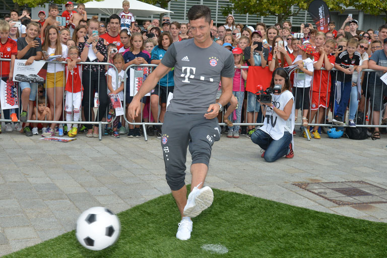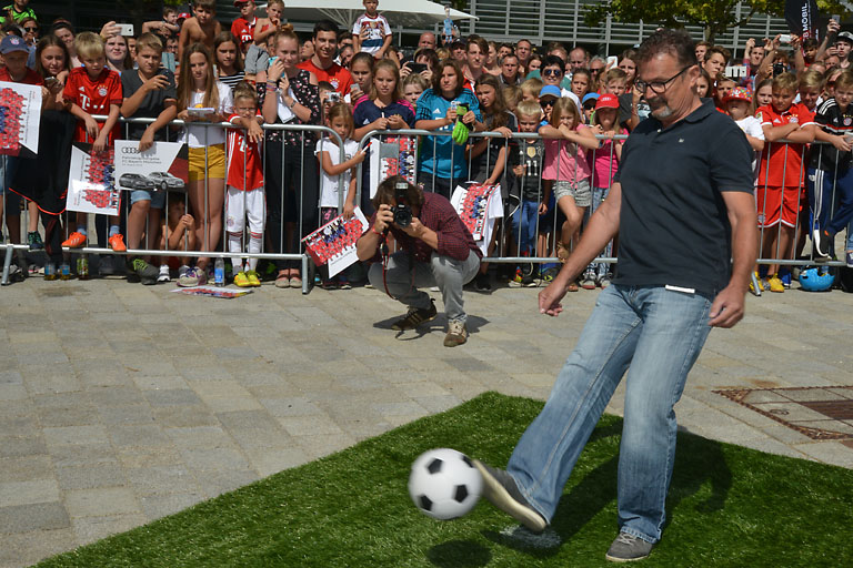 Eine der Fans hatte dann noch besonderes Glück. Er durfte nach vorausgehender Qualifikationsrunde und Losentscheid im Torwandschießen gegen Torjäger Robert Lewandowski antreten. Und das war der 58-jährige Helmut Kaiser aus Ingolstadt, der von fünf Bällen einen versenkte. Mehr schaffte Lewandowski auch nicht. Oder wollt es nicht schaffen. Denn der Fan bekam immerhin ein Premium-Paket für seinen Einsatz an der Torwand. Und das wollte ihm der Stürmer offenbar auch gönnen.