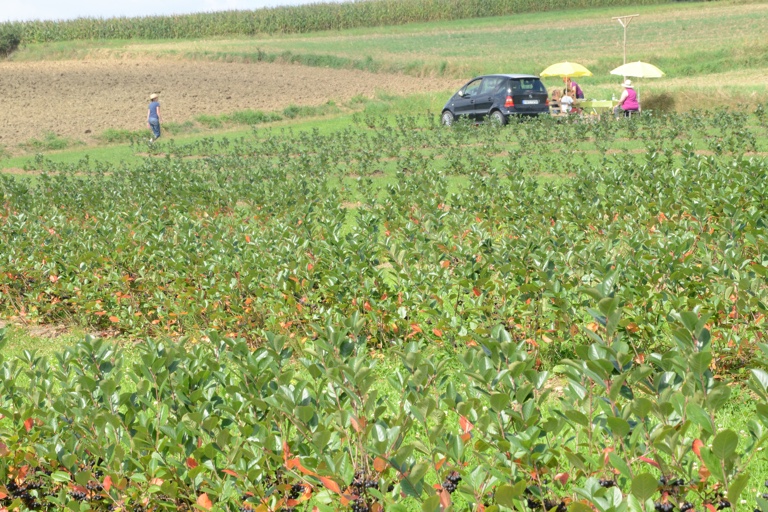 (sg/ty) Auf dem Feld am Ortsrand von Ilmmünster, rechter Hand, wenn man in Richtung Scheyern fährt, gab es jetzt eine kleine Premiere. Willi Doppler (64), von einigen fleißigen Helfern unterstützt, konnte erstmals auf seiner 1000 Pflanzen umfassenden Plantage Aronia-Beeren ernten. „Sonne und Wärme haben die Beeren ordentlich verwöhnt“, zeigte er sich zufrieden mit der Qualität der Ausbeute. Teilweise sei der Oechslegrad zuletzt binnen einer Woche von 18 auf 26 gestiegen.