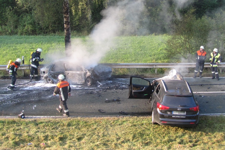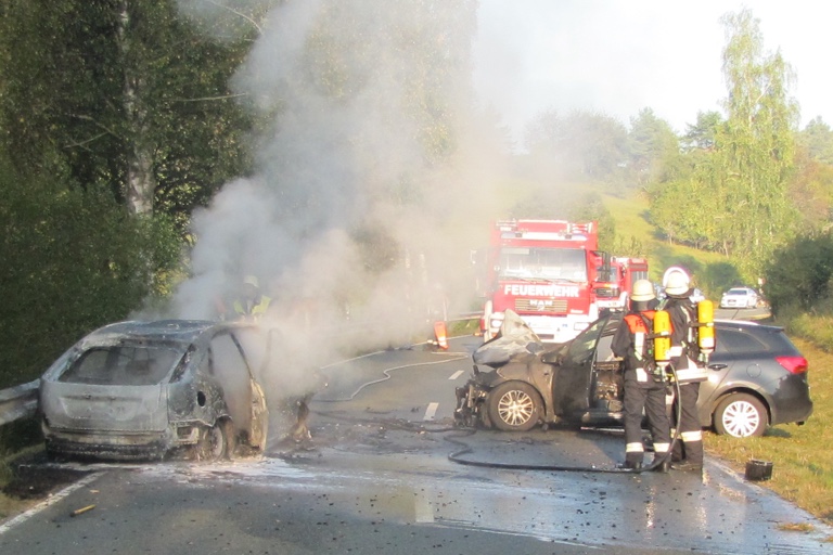 Zum Löschen des Brandes sowie für Verkehrs- und Reinigungsmaßnahmen waren die Feuerwehren aus Hohenfels, Raitenbuch und Parsberg vor Ort. An den beiden Autos entstand jeweils Totalschaden. „Bei dem Brand wurde auch die Fahrbahndecke beschädigt, so dass sie erneuert werden muss“, teilte die Polizeiinspektion Parsberg heute mit. Deshalb ist die Kreisstraße NM 33 in diesem Bereich von der zuständigen Straßenmeisterei Parsberg bis auf weiteres gesperrt.