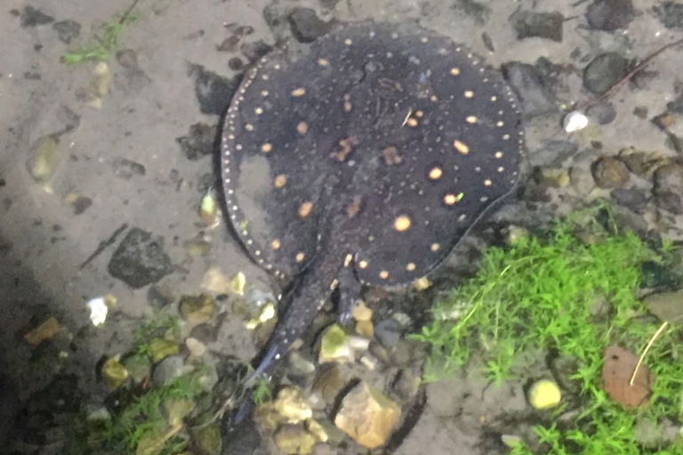 „Der Mann suchte die Stelle zur Nachtzeit gezielt mit einer Taschenlampe ab und entdeckte einen Stachelrochen“, berichtet ein Polizei-Sprecher. Allerdings sei er sich nicht sicher gewesen, ob das Tier überhaupt noch lebt. Vorsorglich wurde jedenfalls die Polizei informiert. Und von dieser wiederum wurde die örtliche Feuerwehr hinzugezogen. Den Floriansjüngern gelang es dann kurz vor 23 Uhr, den offensichtlich erkrankten, aber noch lebenden Rochen einzufangen.