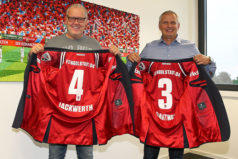 (ty) Wenn der Schanzer-Präsident Peter Jackwerth oder Geschäftsführer Harald Gärtner Termine mit Fans, Sponsoren oder den Spielern des FC Ingolstadt haben, können Sie ab sofort das eigene Trikot anziehen – und dies schick, sportlich und sehr hochwertig in einem feinen Sakko präsentieren.