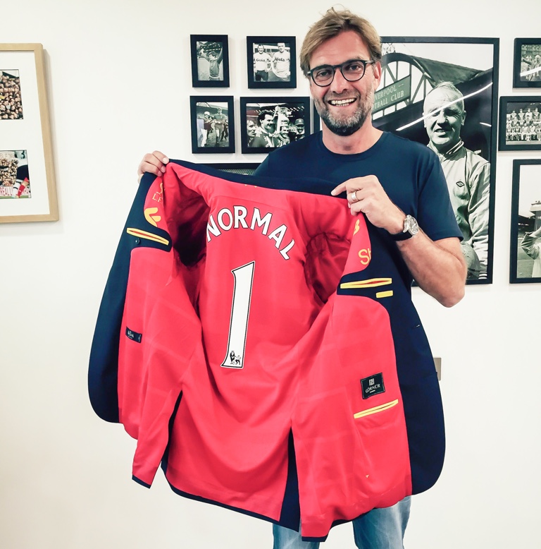 Auch Kult-Trainer Jürgen Klopp trägt ein Trikot-Jakett.