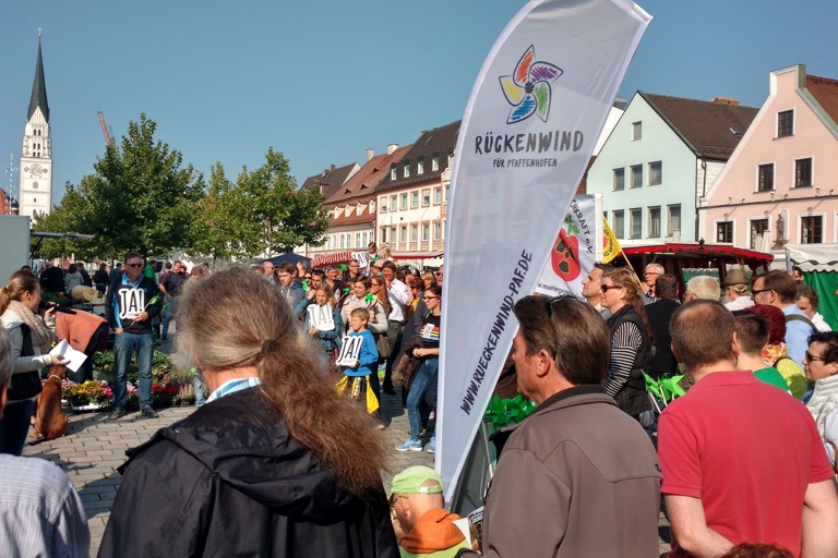 Rund 100 Teilnehmer, unter anderem ausgestattet mit „Ja“-Schildern und „Anti-Atomkraft“-Transparenten – fanden sich gestern Vormittag am Haus der Begegnung und vor dem „Rückenwind“-Infostand ein. Als erste Rednerin sprach Jana Maria Habl (17) vom Pfaffenhofener Jugendparlament über die geplanten Windräder. „Denkt mehr an mich und meine Generation als an euch selbst“, lautete ihr Appell: „Lieber drei Bürgerwindräder als ein Atomkraftwerk vor der Nase.“