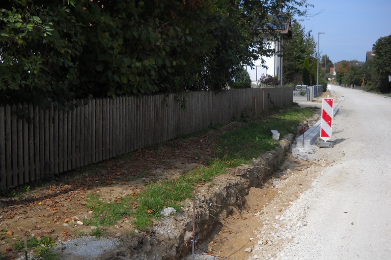 Bestätigt hat der Bauausschuss die ursprünglich vorgesehene Abgrenzung des öffentlichen vom privaten Bereich durch einen so genannten Granit-Einzeiler. Einig war man sich auch, dass dieser Granit-Einzeiler auf Privatgrund versetzt wird, damit die Gehwegfläche (diese wird gepflastert) ein homogenes Erscheinungsbild bekommt und nicht durch Vor- und Rücksprünge der Pflasterzeile gestört wird.