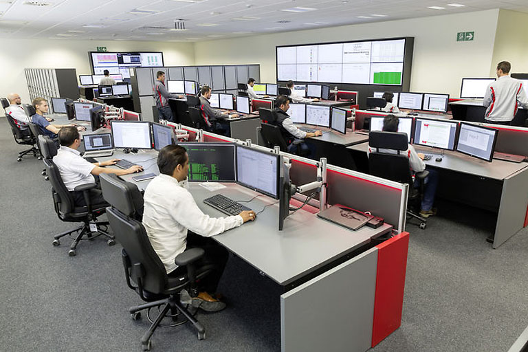 Im zentralen Produktionsleitstand in Mexiko kontrollieren insgesamt 105 Mitarbeiter die Entstehung des neuen Audi Q5