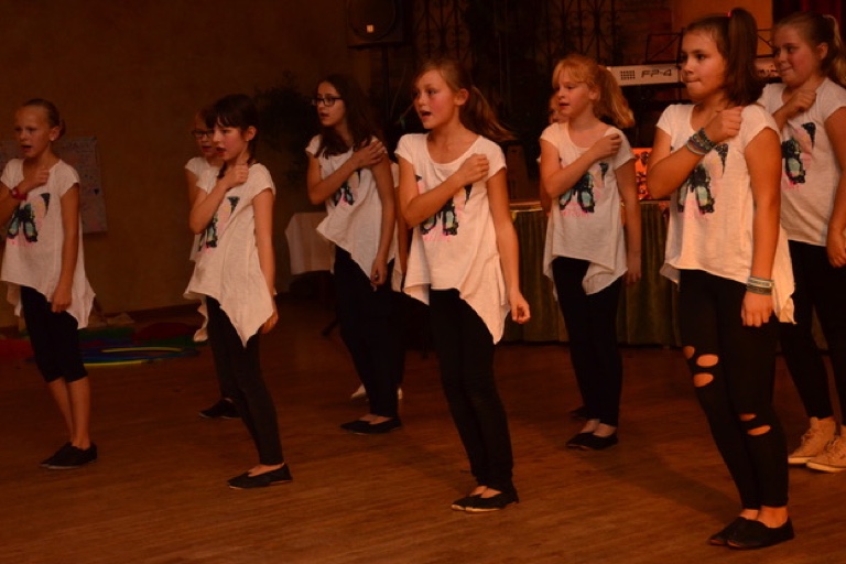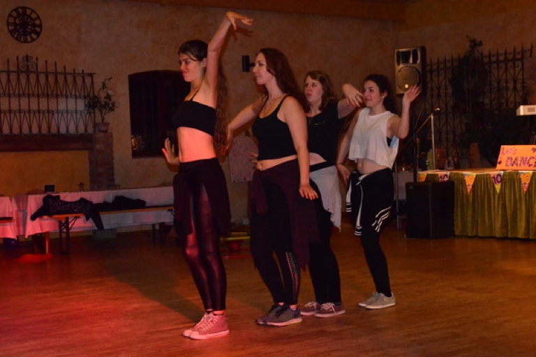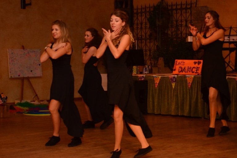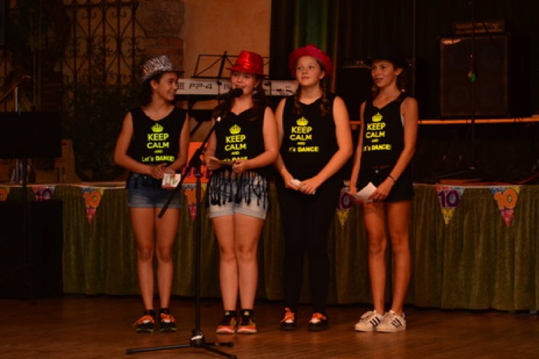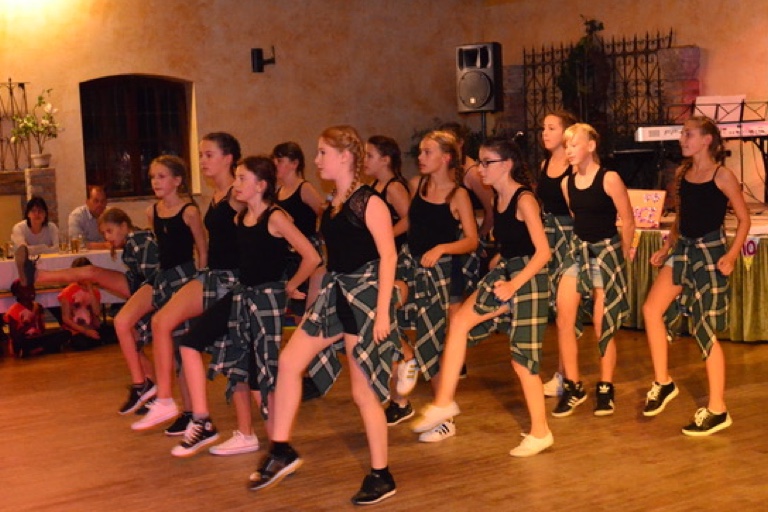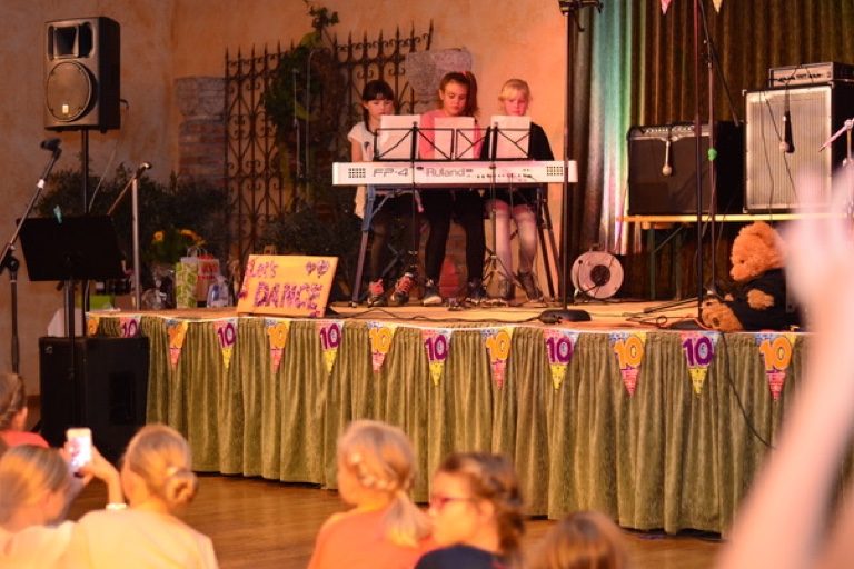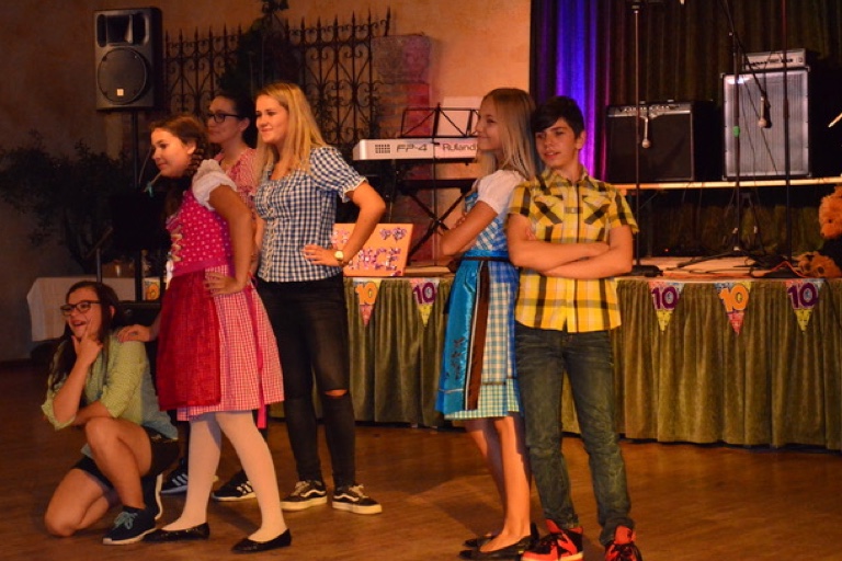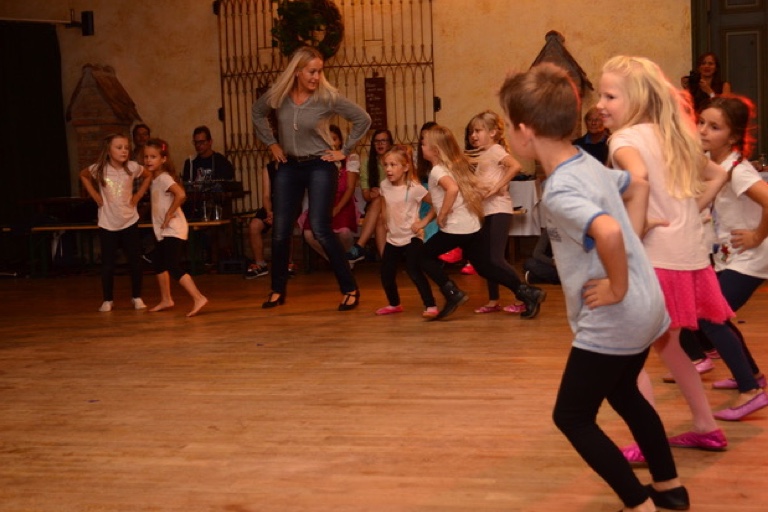 Das Programm wurde von ihr eigens zusammengestellt, die Moderatorinnen Simona, Erika, Bettina und Jamie haben sie bestens unterstützt: Nach einem Welcome-Drink für die Gäste marschierten die knapp 100 Protagonisten auf die Tänzfläche des großen Stadls beim Rockermeier in Unterpindhart ein. Alle wurde namentlich im rasanten Tempo vorgestellt, zur Begrüßung tanzen alle zusammen eine gemeinsame Choreografie. Während des Abendessen spielten vier Mädchen – alle auch Schülerinnen der befreundeten Musikschule „realtime music“ aus Rohrbach – Lieder am Klavier.
