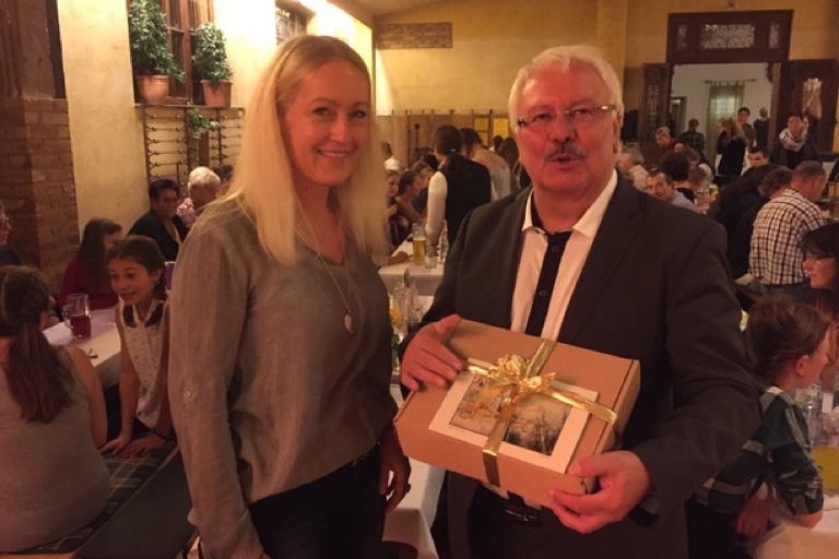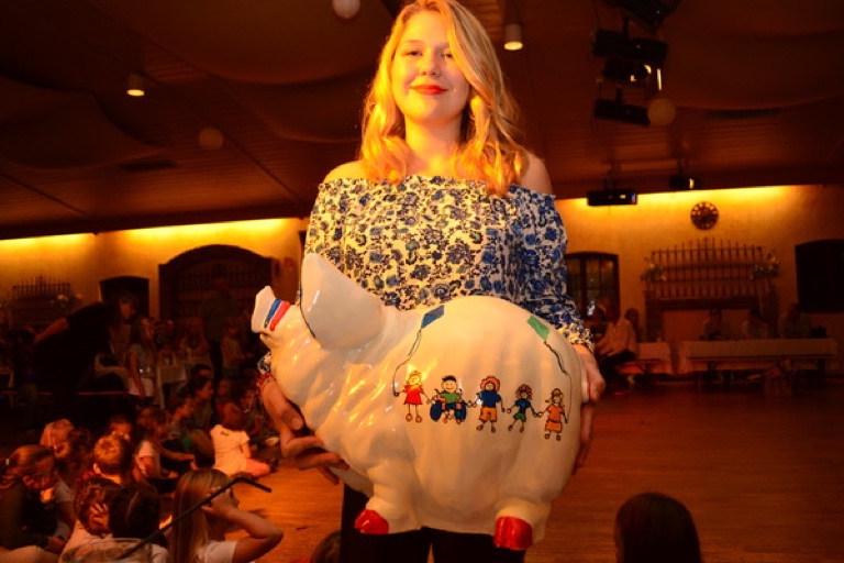 Ganz ruhig wurde es im Saal, als Silke Eberhardt daran erinnerte, wie glücklich man sein könne, dass all unsere Kinder so gesund durch den Saal hüpfen und tanzen können. Familien könnten in große Not geraten, wenn einem Familienmitglied, dem eigenen Kind eine lebensbedrohliche Diagnose gestellt werde. Bei einer privaten Feier hatte Eberhardt die Gründerin der „Stiftung Ambulantes Kinderhospitz München – AKM“ kennengelernt. „Eine bemerkenswert sympathische Frau, die selbst zwei Kinder verloren hat“, berichtet sie. Da sei ihr schnell klar gewesen, dass dies der Spenden-Adressat ihres Familienfestes sein soll. Von der Stiftung war Steffen Horak aus Ismaning angereist, begleitet von einen Sparschwein, in das alle Gäste ihre Spenden warfen.