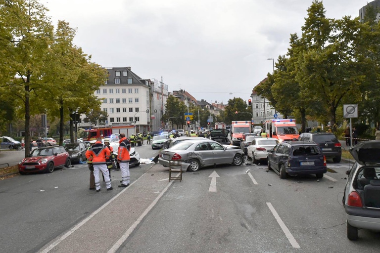 (ty) Wie berichtet, hat sich am Freitag kurz vor 16 Uhr in München an der Kreuzung von Nymphenburger Straße und Landshuter Allee ein schrecklicher Unfall ereignet. Ein 86-Jähriger war mit seinem Mercedes in mehrere an der Ampel stehenden Autos gerauscht. Eine 25-Jährige Pkw-Lenkerin starb noch an der Unglücksstelle. Der 86-Jährige und seine 84-jährige Ehefrau erlitten schwere Verletzungen. Insgesamt waren 15 Autos in den Horror-Crash verwickelt. Heute hat die Münchner Polizei den aktuellen Stand der Ermittlungen veröffentlicht. Demnach ist immer noch unklar, wie schnell und vor allem warum der 86-Jährige mit seinem Mercedes ungebremst in das Stau-Ende krachte.