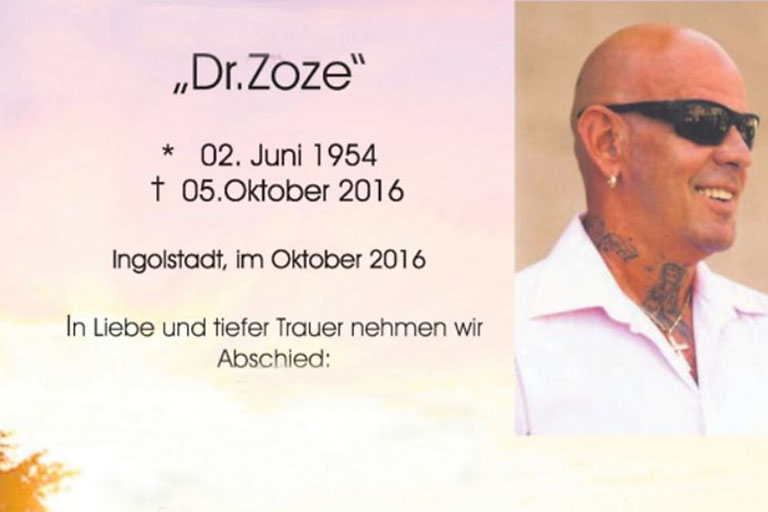 (ty) Ein Himmel in Pink, ein Sonnenuntergang hinter Palmen und das Bild des Dahingeschiedenen mit einem breiten Lächeln. Diese Todesanzeige wurde im Raum Ingolstadt und München zum Stadtgespräch. Und sie galt „Dr. Zoze“, wie Wilhelm T. auch genannt wurde. Mit 62 Jahren ist er dem Krebs erlegen. Der Mann mit den auffälligen Tattoos und dem kahlen Kopf war bekannt in der Region, vor allem natürlich in der so genannten Szene. Denn „Dr. Zoze“ war der Betreiber des „FKK-Club Hawaii“ an der Autobahnausfahrt Ingolstadt-Süd.