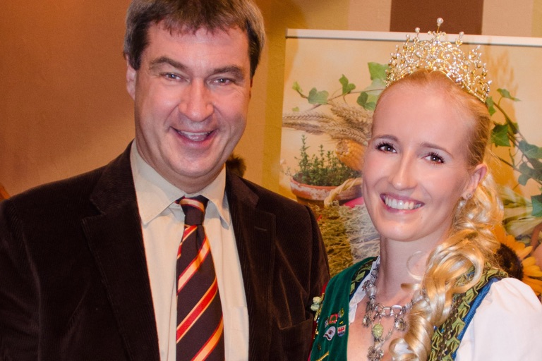 (ty) Die Hallertauer Bierkönigin, Christina Burgstaller aus Reichertshausen, traf kürzlich in Helfenbrunn den bayerischen Heimat- und Finanzminister Markus Söder (CSU). Dabei nutzte die Majestät die Gelegenheit, um dem aus Franken stammenden Politiker die Biere aus der Hallertau vorzustellen sowie für die regionalen Brauereien zu werben (Foto oben).