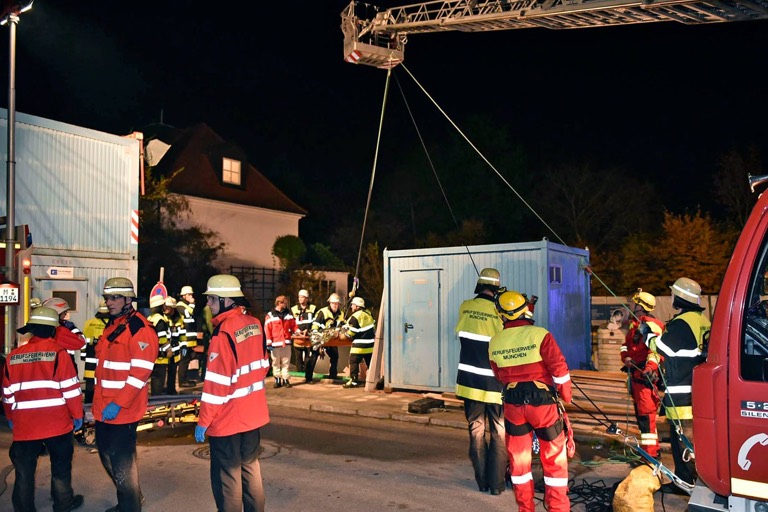 Erst nach längerer Zeit, so heißt es weiter, wurde der Verunglückte dann von einem 48-jährigen Münchner entdeckt, der offenbar als Spaziergänger unterwegs war und zufällig vorbeikam. Der setzte nun sofort einen Notruf ab. Die daraufhin alarmierten Kräfte von Feuerwehr und Rettungsdienst rückten an, stiegen zu dem Verletzten in die Baugrube und versorgten ihn erst einmal vor Ort.