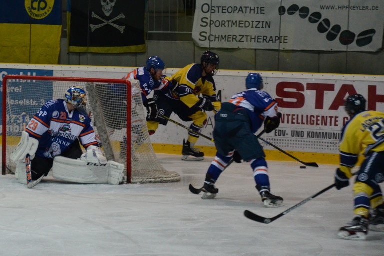 Vor heimischer Kulisse holten die Pfaffenhofener nämlich heute ihren ersten Zähler in dieser Saison. Am Ende der regulären Spielzeit stand es gegen die „Ice Dogs“ aus Pegnitz 4:4 (2:1, 0:2, 2:1). Nachdem die Verlängerung torlos endete, siegten die Franken im Penalty-Schießen. Zuvor hatten die Zuschauer im Pfaffenhofener Eisstadion ein nicht hochklassiges, aber sehr unterhaltsames und vor allem spannendes Match präsentiert bekommen.