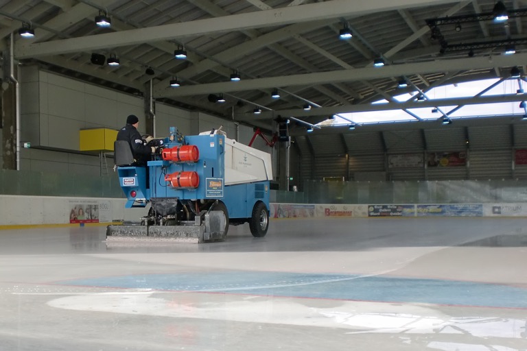 Anfang September haben Mitarbeiter der Stadtwerke die Anlage heuer wieder in Betrieb genommen. Sie sorgen auch dafür, dass regelmäßige Kontrollen durchgeführt werden – an den Sicherheitsventilen, an den elektronischen Anlagen bis hin zur Mess-, Steuerungs- und Regelungstechnik (MSR) der Kühlanlage. Dazu kommen auch externe Experten ins Eisstadion, zum Beispiel vom TÜV. Die Oberfläche der Betonfläche suchen die Mitarbeiter der Stadtwerke selbst nach Rissen ab.