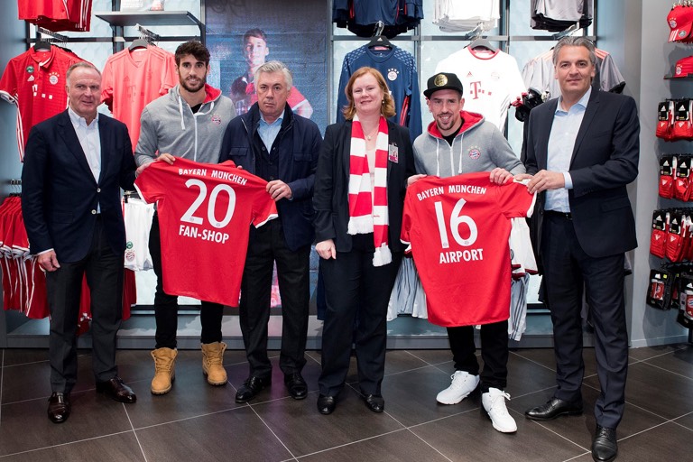 Begehrt bei den Fußballfans waren natürlich auch Trainer Carlo Ancelotti und der FCB-Vorstandschef Karl-Heinz Rummenigge. Eröffnet wurde der komplett neu gestaltete 250 Quadratmeter große Shop somit offiziell von Rummenigge, Martinez, Ribéry und Ancelotti sowie von der Geschäftsführerin der Flughafen-München-GmbH, Andrea Gebbeken, und Bayern-Merchandising-Vorstand Jörg Wacker.