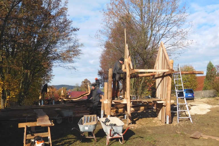 Begonnen wurde jetzt vor allem mit den Geländemodellierungen im östlichen Spielplatzbereich. Mittlerweile nimmt die Natursteinkletterwand im Bereich der Röhrenrutsche schon Formen an und auch das Spielhaus kann schon erkannt werden. Die Wellenbank, die zur Erholung dienen wird, wurde von den Holzfacharbeitern ebenfalls schon erstellt. „Beeindruckt zeigen sich die Mitwirkenden vor allem davon, wie Robert Schmidt-Ruiu es schafft, aus einem Haufen Holz die einzelnen Geräte zusammenzustellen“, wird aus dem Rathaus berichtet. „Eine direkte Anleitung für die einzelnen Spielgeräte gibt es nämlich nicht. Jedes erstellte Spielobjekt ist quasi ein Unikat.“