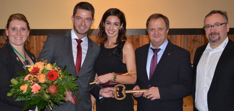 Narrhalla-Präsidentin Marion Summerer (von links), Faschingsprinz Georg Ott mit Prinzession Carina Spiegl, Bürgermeister Anton Steinberger, Vize-Präsident Michael Jäger.
