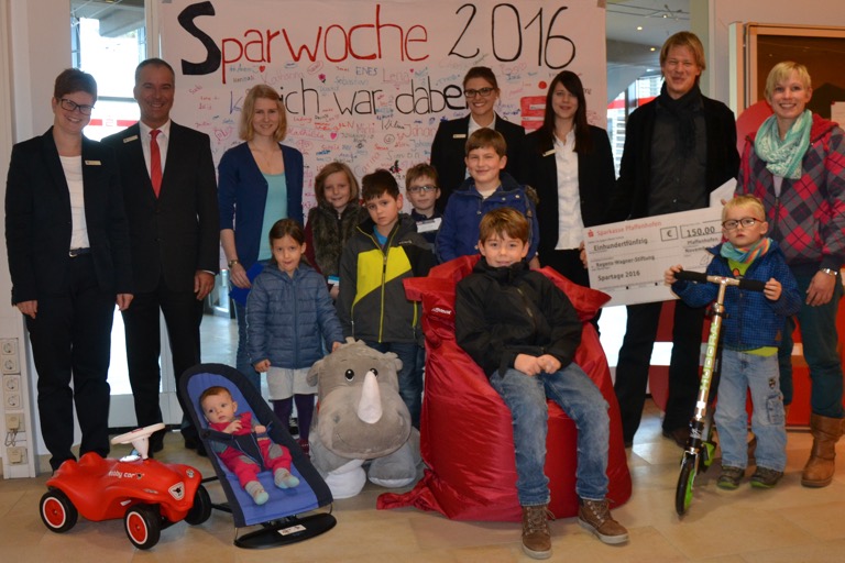Die jungen Sparer hatten sich im gesamten Geschäftsgebiet zahlreich an der Weltsparwoche und am diesjährigen Gewinnspiel beteiligt. Dabei galt es, dem tatsächlichen Inhalt von 150 Euro in Scheinen und Münzen in der durchsichtigen Weltkugel möglichst nahe zu kommen. Die Kinder hatten aber nicht nur großen Spaß an der Schätzaktion. Sie freuten sich in der Hauptstelle auch sehr darüber, dass sie sich auf einem riesigen Plakat verewigen durften.