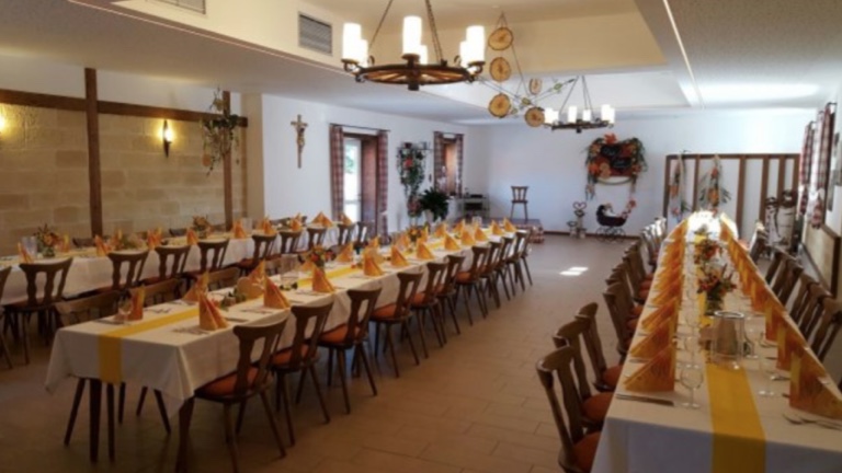 Vor einiger Zeit hat sie ein Nachbargrundstück erworben, dessen Wohnhaus bis vor kurzem für Übernachtungen diente und in dessen Hof, im Nebengebäude und in der „Alten Schmiede", in den vergangenen Jahren der Künstlermarkt veranstaltet wurde. Man darf schon gespannt sein, was in Zukunft auf dem Gelände noch alles passieren wird. Zwischendurch hatte Heidi Schleibinger noch ein anderes Projekt: Sie renovierte den Saal des Gasthauses, den sie jetzt als „unser Schmuckstück“ bezeichnet.