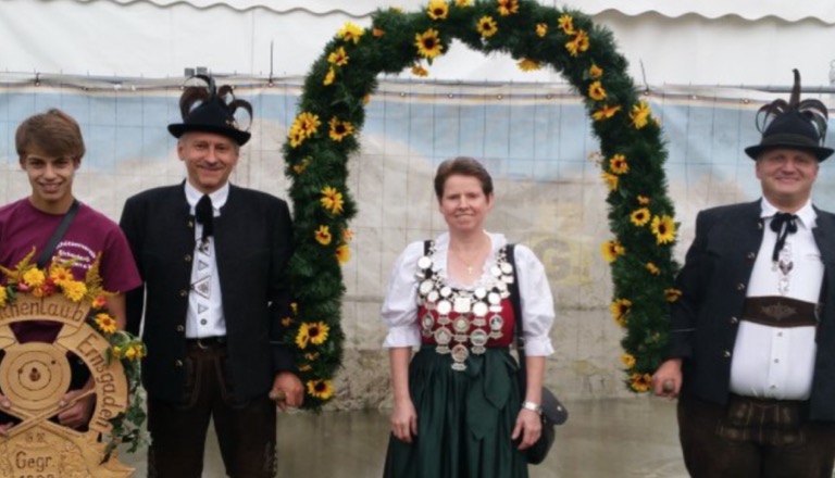 Sektions-Schützenkönigin Heidi Schleibinger, begleitet von Tim Mayerhofer (von links), Max Schreiner und Wolfgang Kund.