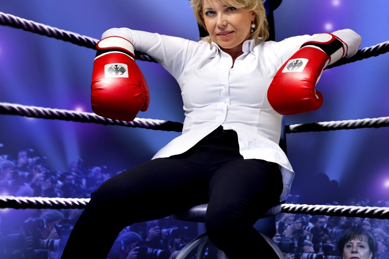 In ihrer Eigenschaft als Kanzler-Souffleuse ist Simone Solga beauftragt, alle Bürgerinnen und Bürger zu einem Abend einzuladen, der entscheidend für deren Leben sein wird – und es darf dabei sogar gelacht werden! Wer da jetzt fragt: Lachen in Zeiten der Eurokrise und der sozialen Konflikte – geht das? Und ob! Hat die Bundesregierung, stets mit gutem Beispiel vorangehend, nicht schon des Öfteren unsere Lachmuskeln strapaziert? Viele Abgeordnete sind hervorragende Komiker und sollten ihr Talent eigentlich nicht länger in der Politik vergeuden. Und da sind wir auch schon beim Thema: Politik – wo Realität auf Wirklichkeit trifft.