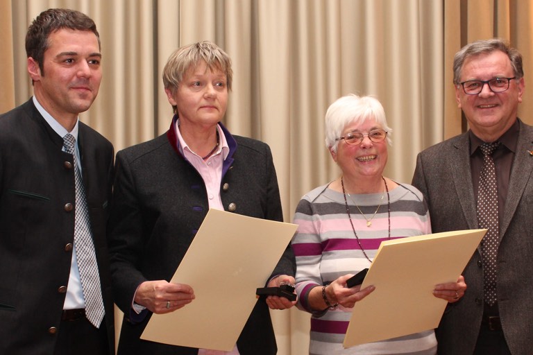 Notburga Dierl und Marianne Rother erhielten die Stadtmedaille. Links Pfaffenhofens Rathauschef Thomas Herker, rechts der Dritte Bürgermeister von Rohrbach, Johann Vachal.