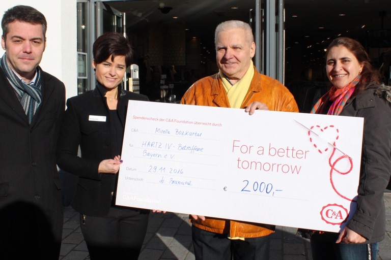 (ty) Auf Vermittlung des Pfaffenhofener Bürgermeister Thomas Herker (SPD) konnte Jürgen Franke, der Vorsitzende des Vereins „Hartz IV Betroffene – Bayern e.V.“ eine Spende über 2000 Euro von Mirella Bozkartal, der Leiterin der C&A-Filiale in Pfaffenhofen, entgegennehmen. Zum wiederholten Mal engagiert sich C&A im Rahmen seiner Weihnachtsspendenaktion für Kinder und Familien in Deutschland mit insgesamt einer Million Euro.