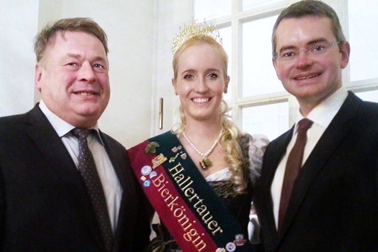 (ty) Die Hallertauer Bierkönigin Christina Burgstaller aus Reichertshausen war auf Einladung des Landtagsabgeordneten Peter Tomaschko zu Gast im bayerischen Landtag. Sie nutzte dabei auch die Gelegenheit zu intensiven Gesprächen mit dem bayerischen Landwirtschaftsminister Helmut Brunner über die heimischen Brauereien, die bayerischen Braukunst und das Reinheitsgebot (Foto oben).