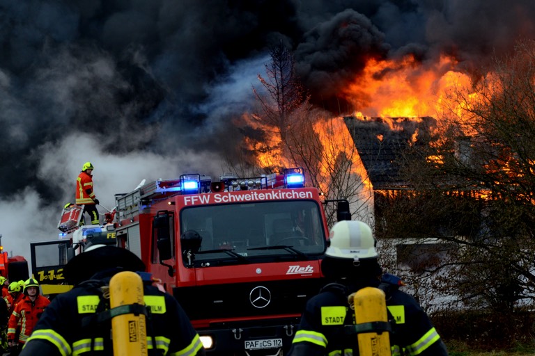 Neben der örtlichen Feuerwehr aus Hettenshausen rückten auch die Kameraden aus Pfaffenhofen, Schweitenkirchen, Entrischenbrunn und Paunzhausen an. Außerdem kamen Vertreter der Kreisbrandinspektion sowie die Unterstützungsgruppe „Örtliche Einsatzleitung“ an den Brandort. Als die Floriansjünger mit den Löscharbeiten begannen, schlugen die Flammen bereits aus dem Gebäude und teilweise durchs Dach. Insgesamt rund 100 Feuerwehrleute waren herbeigeeilt. Außerdem waren zwei Rettungswagen, ein Notarzt und der Rettungsdienst-Einsatzleiter sowie ein First-Responder vor Ort. Zudem wurde das Pfaffenhofener THW verständigt, und natürlich kam auch die Polizei.