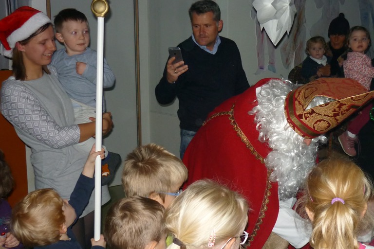 (ty) Rund 200 Kinder, Eltern und Verwandte trafen sich in der Pfaffenhofener Kita „Burzlbaam“ zur stimmungsvollen Weihnachtsfeier mit eigenem Christkindlmarkt. Das Christkind und Kita-Leiterin Nina Rabe begrüßten die Gäste und eröffneten die Veranstaltung. Jede Kita-Gruppe verkaufte selbstgemachte Deko-Artikel, selbst gestrickte Stulpen und Mützen sowie Marmeladen, Gewürzöle, Badesalze und vieles mehr. Der Elternbeirat unterstützte die Kindertagesstätte mit dem Verkauf von selbst gemachten Waffeln und Punsch. Auch der Nikolaus kam noch auf einen Besuch vorbei, verteilte Süßes und Mandarinen an die Kinder (Foto oben).
