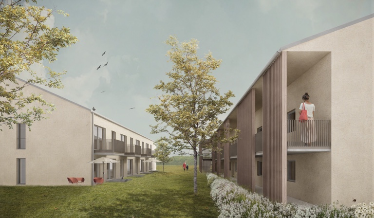 Diese Grafik zeigt die barrierefreie Wohnanlage, für die heuer die Bauarbeiten begonnen haben. (Quelle: Büro Obereisenbuchner).