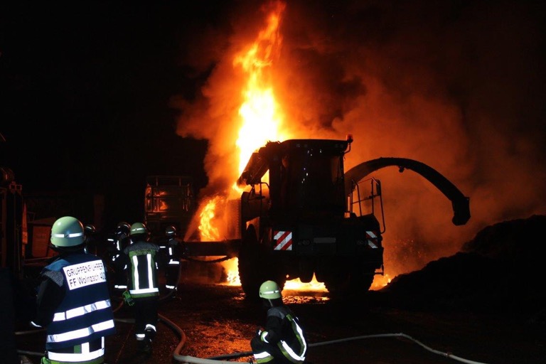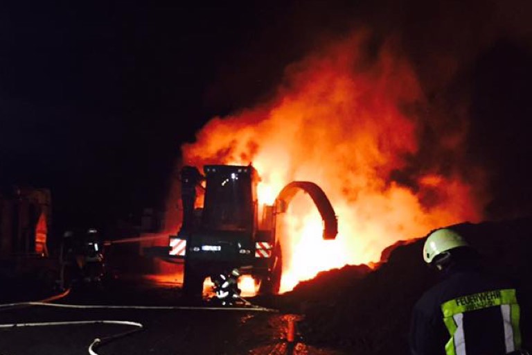 Auf einer Kompostier-Anlage ist gestern Nachmittag ein fahrbarer Holzhäcksler ein Raub der Flammen geworden – Ermittlungen der Kripo zur Brandursache laufen