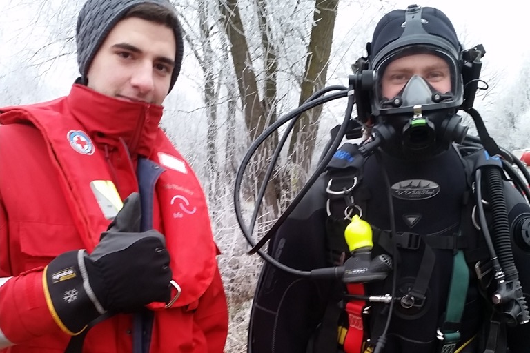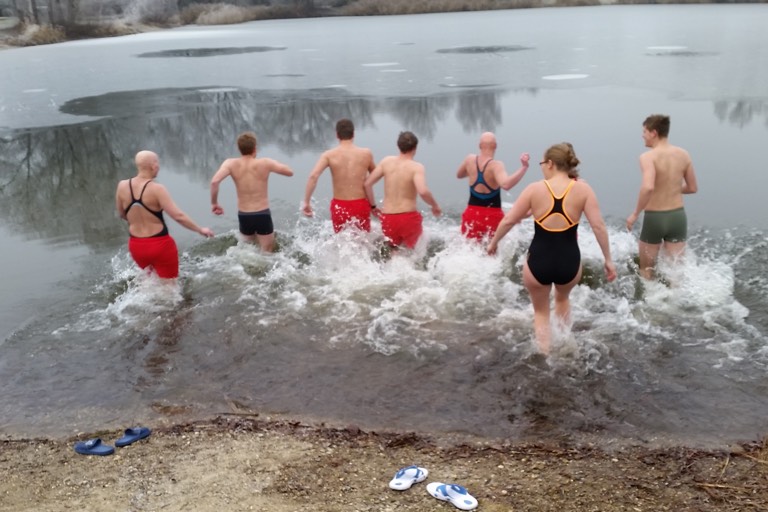 Die Manchinger Wasserwacht hatte wieder ein beheiztes Zelt aufgebaut und versorgte die unverfrorenen Taucher sowie die zahlreichen Helfer mit heißen Getränken. Zum Abschluss ließen sich ein paar ganz unerschrockene Mitglieder der Ortsgruppe Manching sogar noch dazu hinreißen, die Temperatur des Wassers auch ohne Neoprenanzug zu überprüfen – sie sprangen in Badehose und Bikini in den Niederstimmer Weiher.