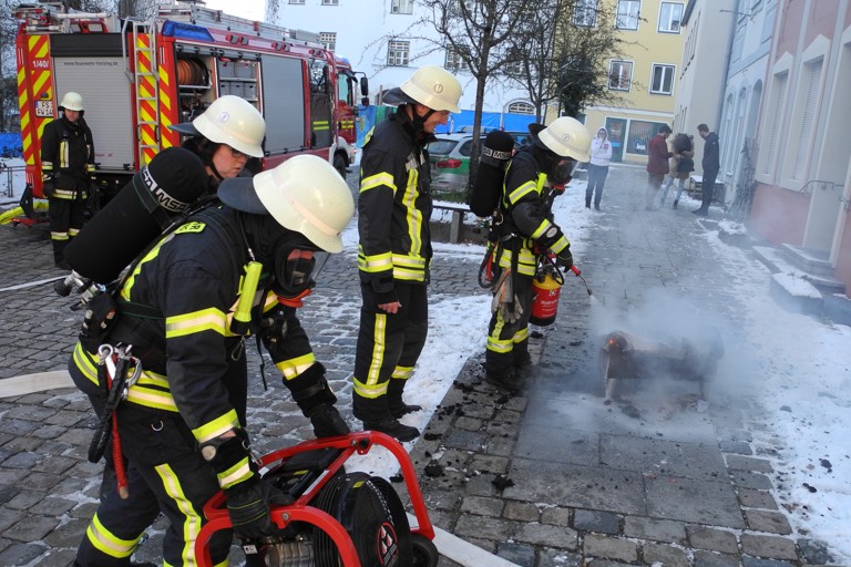 Feuerwehr-Einsatz am Freisinger Rindermarkt: Niemand verletzt, Schaden vergleichsweise gering – Ursache noch unklar