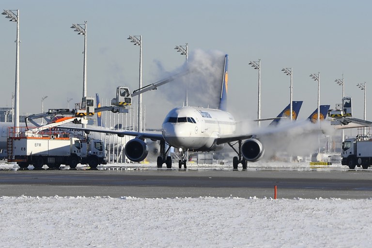 Am Münchner Flughafen befinden sich am Beginn der Startbahnen insgesamt zwölf Enteisungsflächen. Bei starkem Schneefall seien auf jeder dieser Flächen bis zu sechs spezielle Enteisungsfahrzeuge – die so genannten Eisbären – im Einsatz. Die EFM, eine gemeinsame Tochter der Deutschen Lufthansa AG und der Flughafen-GmbH, kann alle Flugzeugtypen enteisen – vom kleinen Privatjet bis zum größten Passagierflugzeug der Welt, dem Airbus A380. Im Winter können nach eigenen Angaben bis zu 68 Maschinen pro Stunde von Schnee und Eis befreit werden.