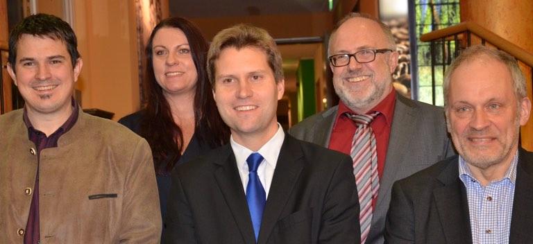 Der neue Kreisvorstand: Fabian Röhrich (von links), Petra Thalmeir-Bichler, Thomas Neudert, Josef Postel, Adrian Dunskus.