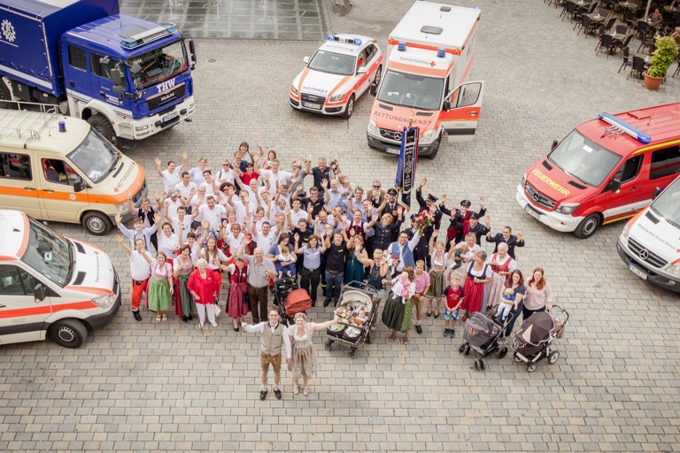 Eine Woche später, am 16. September, gaben sich Bettina Attenhauser und Stefan Schedl vor der Standesbeamtin Daniela Reisner das Ja-Wort. Die Braut ist in ihrer Freizeit beim Technischen Hilfswerk in Pfaffenhofen aktiv, der Bräutigam hauptamtlich bei der BRK-Rettungswache Pfaffenhofen tätig und ehrenamtlich bei der Feuerwehr Scheyern engagiert. Daher erschienen die Hilfsorganisationen zur Gratulation auf dem Hauptplatz und bildeten zusammen ein Spalier, das fast bis zum Brunnen reichte.