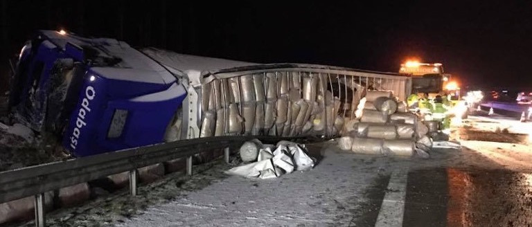 Sattelzug wurde offenbar zum Ausweichen gezwungen, lenkte in die Böschung und kippte um – Aufwändige Bergung
