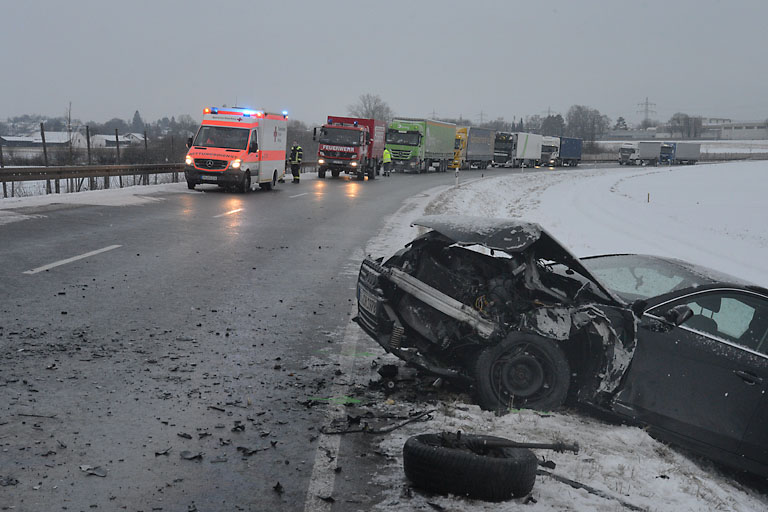 Ein 31-jähriger VW-Fahrer, der in Richtung Interpark unterwegs war und zuvor von dem 33-jährigen überholt worden war, konnte dem Unfall verursachenden Audi, der auf seiner Fahrspur zum Stehen kam, nicht mehr ausweichen und prallte noch frontal gegen den Pkw.