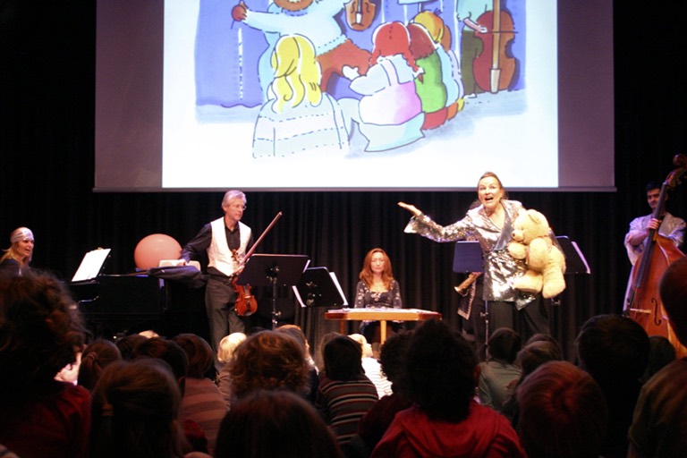 Die Kinder erleben die Bären-Abenteuer mit allen Sinnen: Sie lauschen den Wellen des Meeres in der Musik, lernen Lieder oder Rhythmus-Muster auf Instrumenten und tanzen den mittelalterlichen Tanz „La Manfredina“. Erzählt wird die Geschichte vom kleinen Bären, der nicht einschlafen kann, von Moderatorin Julia Schölzel.