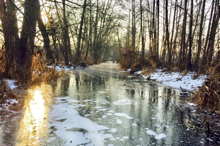 Der Rothernbach ist komplett zugefroren – Amtliche Warnungen des Deutschen Wetterdiensts vor strengem Frost und Nebel im Kreis Pfaffenhofen