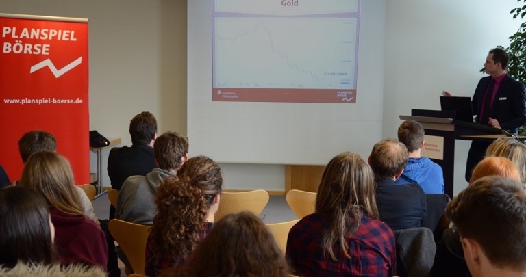Dass das vergangene Börsenjahr ein durchaus turbulentes war, zeigte Alexander Schmid vom Vermögensmanagement der Sparkasse an einigen wichtigen Entwicklungen und Daten auf. So verbuchte der deutsche Leit-Index DAX im abgelaufenen Jahr ein Plus von 6,9 Prozent – allein in den zehn Wochen des Börsenspiels verbesserte er sich um 6,2 Prozent. In diesem Zeitraum herrschte überhaupt kräftig Bewegung: Der Eurostoxx kletterte um 6,1 Prozent, der Dow Jones um 8,3 Prozent, der Ölpreis um 6,2 Prozent – der ohnehin schon niedrige Goldpreis gab indes um fast zehn Prozent nach.