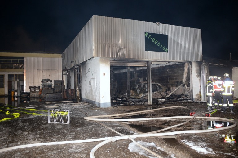 (ty) Wie berichtet, sind gestern Abend in einem Gewerbegebiet im Industriegebiet Schwaig (Kreis Erding), östlich des Münchner Flughafen-Geländes, zwei Lagerhallen in Brand geraten. Ein Großaufgebot von Feuerwehren aus der Umgebung war mit der Brandbekämpfung befasst, die durch die extreme Kälte zusätzlich erschwert wurde. Inzwischen liegen weitere Erkenntnisse zu dem Großbrand vor. Der Gesamtschaden am Gebäude sowie an dem eingestellten Inventar wird nach Schätzungen der Polizei in einer Größenordnung um 500 000 Euro angesiedelt.