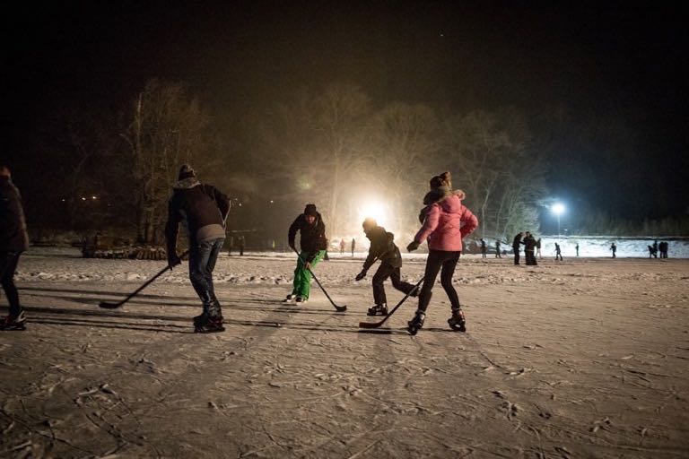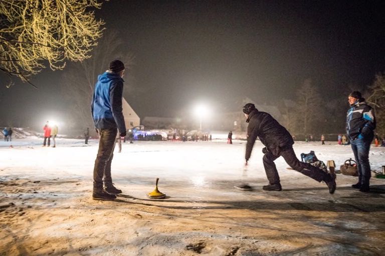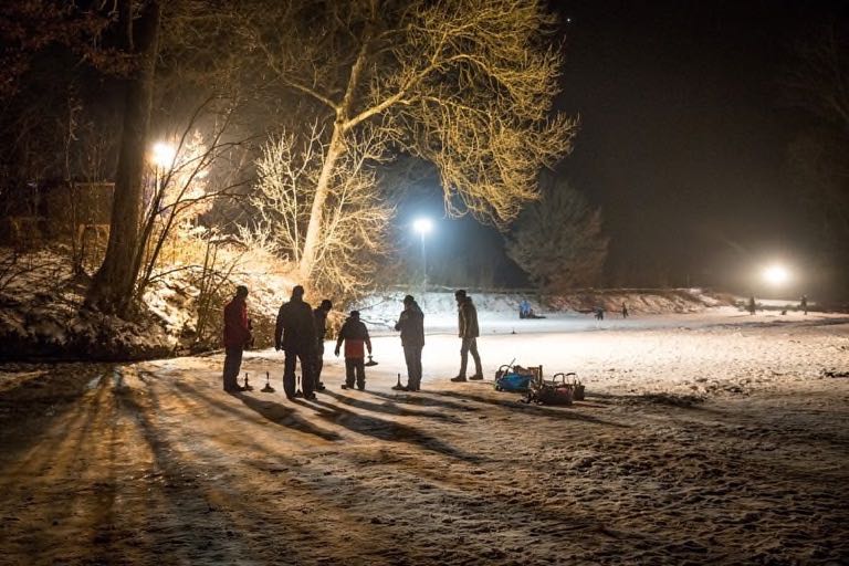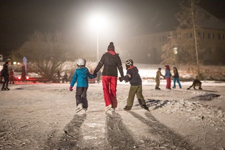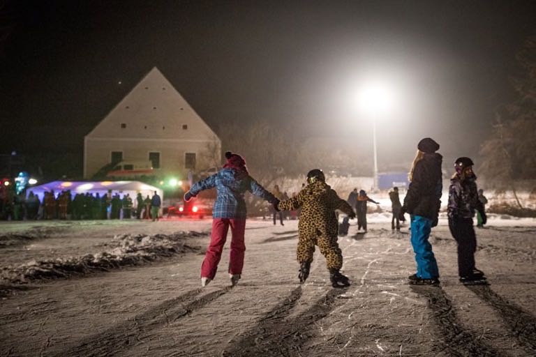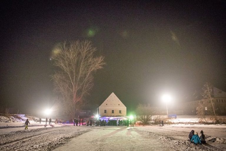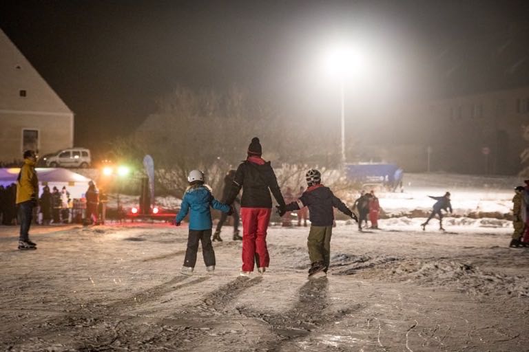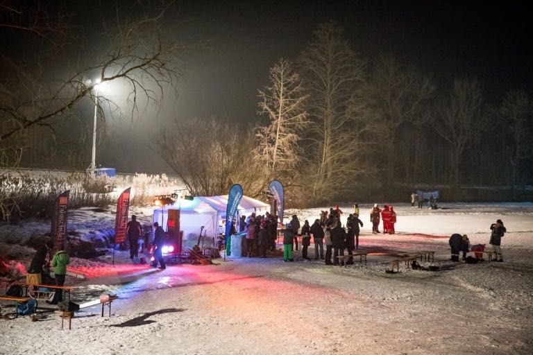Die Organisatoren freuen sich in einer ersten Bilanz über den großen Andrang. Auch am Abend seien noch 200 bis 300 Leute dagewesen: „Familien mit Kindern, Eisstockschützen, Eishockeyspieler – und am Abend dann viele feiernde Jugendliche.“ Die eigens errichtete Schneebar, an der es auch heiße Getränke gab, lockte an. Die beleuchtete Eisfläche und die passende Musik taten ihr übriges zum Erfolg der Veranstaltung. Für das Gelingen des Events hatten sich die THW-Leute aber auch einige Mühe gemacht – unter anderem war mit einem Rasenmäher-Bulldog die Eisfläche vom Schnee befreit worden.