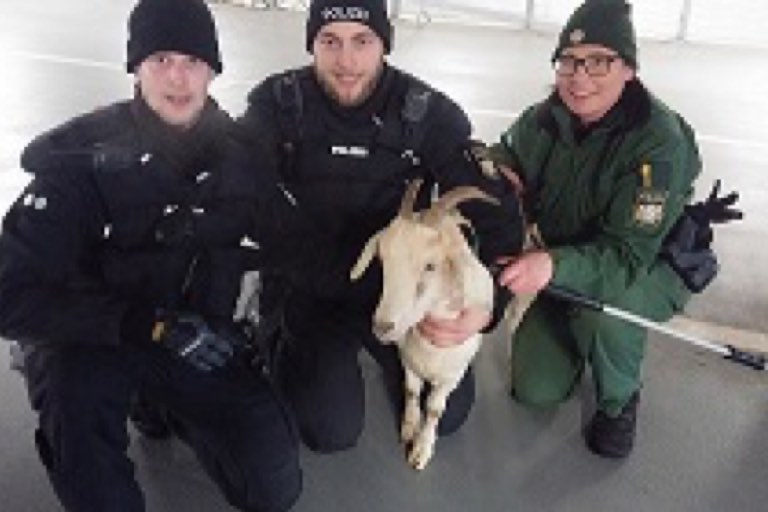 (ty) Von einer tierischen Festnahme-Aktion berichtet heute die Münchner Polizei. Seinen Angang genommen hatte der ungewöhnliche Fall bereits am Dienstagnachmittag. Gegen 13 Uhr war eine weiße Ziege entwischt, die zum Streichelzoo zur Bayernkaserne kommen sollte. Das Tier lief den Angaben zufolge über die Heidemannstraße in die Grusonstraße in nördliche Richtung. Eine Suche in dem Gebiet verlief aber ohne Erfolg – seither fehlte von dem Vierbeiner offenbar jede Spur.
