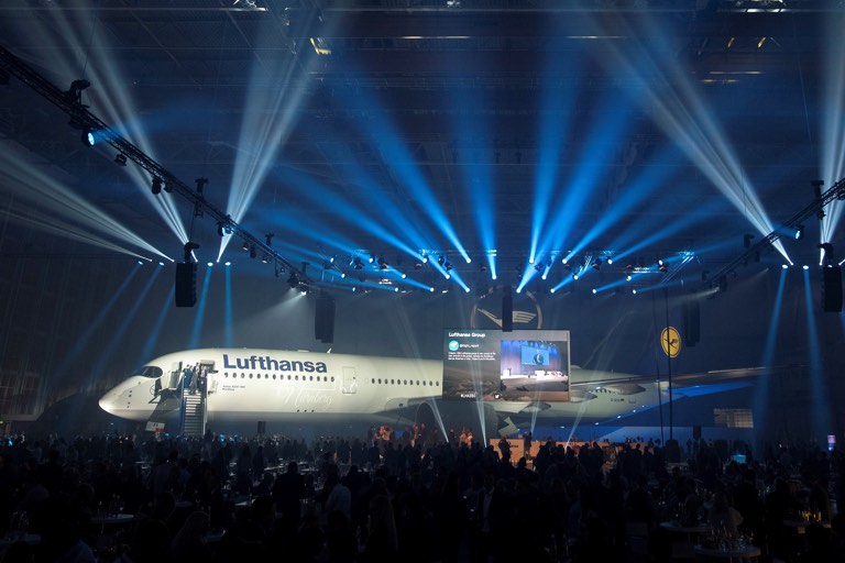 Vor 2000 geladenen Gästen präsentierte die Lufthansa heute Abend ihren brandneuen Airbus A350