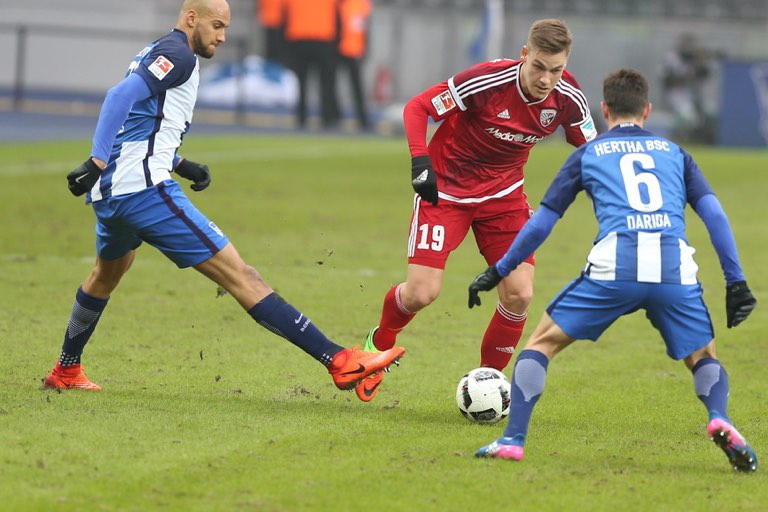 Gefährlich wurde es erst wieder in der 17. Minute, als Anthony Jung einen Querschläger volley auf Groß weiterleitete, Herthas Brooks klärte aber stark, sodass der Schanzer nicht mehr zum Abschluss kam. Dennoch kam der FCI nun besser ins Spiel, während sich die Hauptstädter eher auf die Defensive konzentrierten. Darío Lezcano & Co. konnten in dieser Phase aber nur selten größere Gefahr im Berliner Strafraum herbeiführen. So wagten sich die Gastgeber wieder weiter nach vorne, doch auch ihnen fehlte – weitere Durchschlagskraft.