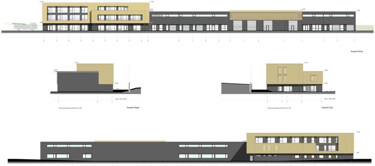 So soll der Gebäudekomplex aus den verschiedenen Blickrichtungen aussehen.